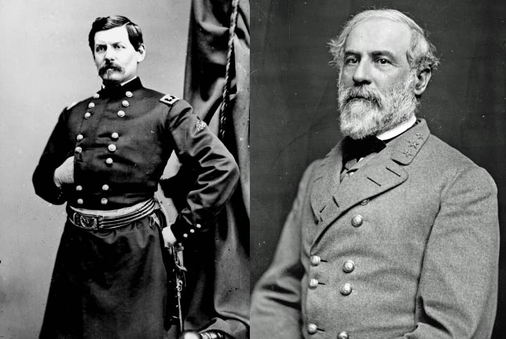 USA General McClellan and CSA General Lee, opposing commanders in the Seven Days Battles.